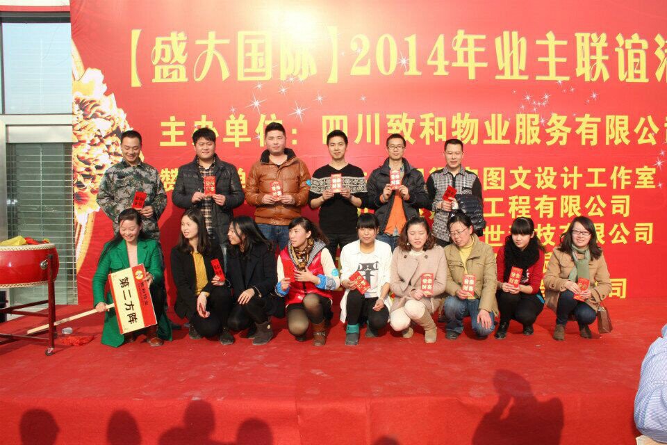 2014年圣誕節(jié)我公司所在樓盤舉行咯《2014業(yè)主聯(lián)誼會》我公司在聯(lián)誼會中取得團(tuán)體第二名!活動(dòng)充分體現(xiàn)咯員工與員工的配合能力,在辦公室曬太陽舒服!