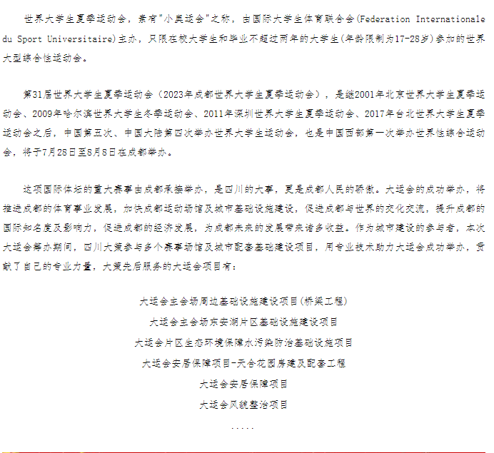大策為世界大學生運動會成功舉辦貢獻力量