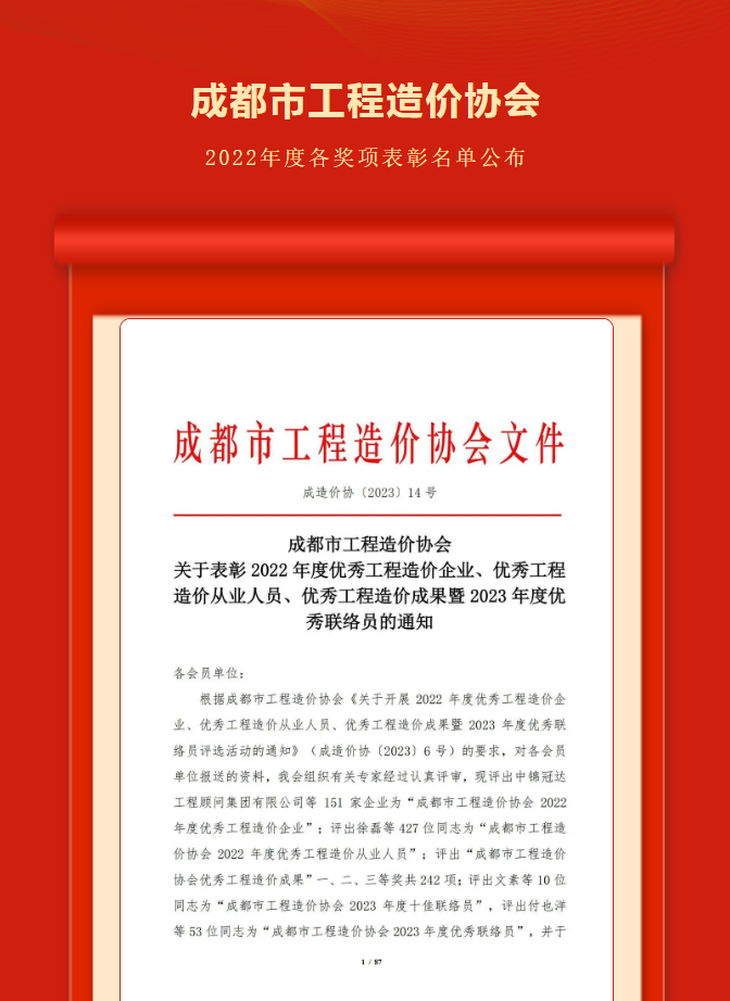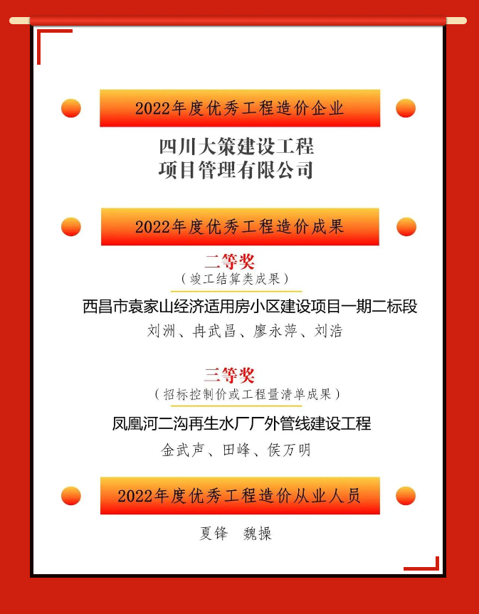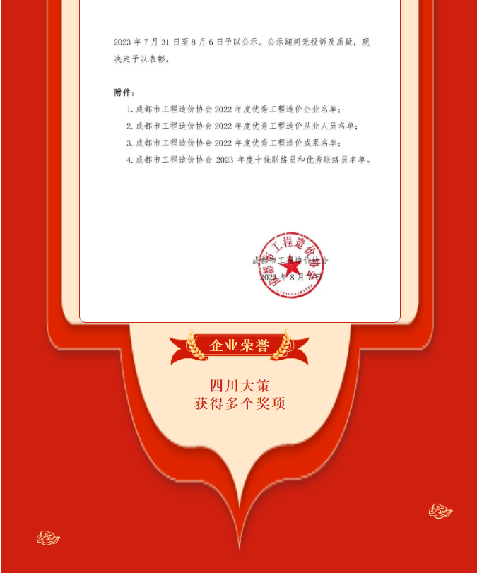 企業(yè)榮譽 |四川大策榮獲成都市工程造價協(xié)會多個獎項