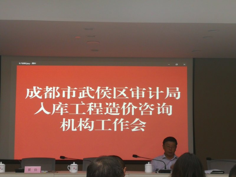 9月7日成都市武侯區(qū)審計(jì)局召開“成都市武侯區(qū)審計(jì)局入庫工程造價(jià)咨詢機(jī)構(gòu)工作會(huì)”。邀請(qǐng)本市優(yōu)秀造價(jià)企業(yè)的主要負(fù)責(zé)人參與,我公司張總受邀參與此次會(huì)議。