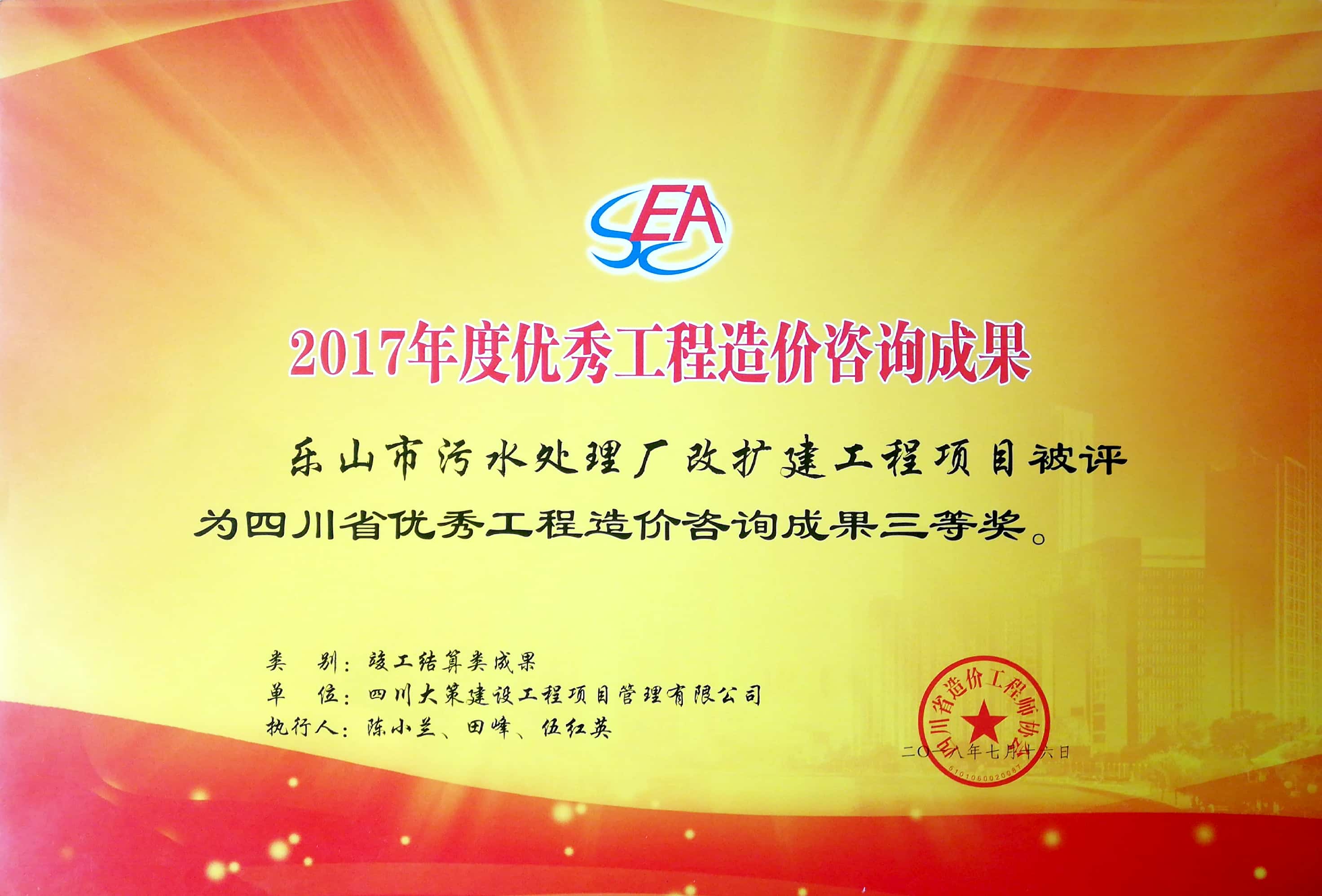 會(huì)議對(duì)榮獲四川省2017年度優(yōu)秀工程造價(jià)咨詢企業(yè)、優(yōu)秀工程造價(jià)咨詢成果及優(yōu)秀工程造價(jià)人員以及“建設(shè)·新視界”紀(jì)實(shí)攝影大賽獲獎(jiǎng)作品的的單位及個(gè)人代表頒發(fā)了證書(shū)和獎(jiǎng)牌。我公司獲得”2017年度優(yōu)秀工程造價(jià)企業(yè)“,樂(lè)山市污水處理廠改擴(kuò)建工程項(xiàng)目被評(píng)為“四川省優(yōu)秀工程造價(jià)咨詢結(jié)果三等獎(jiǎng)”,伍紅英、田峰被評(píng)為“四川省優(yōu)秀造價(jià)工程師”,張知軍被評(píng)為“四川省優(yōu)秀工程造價(jià)專業(yè)人員”。