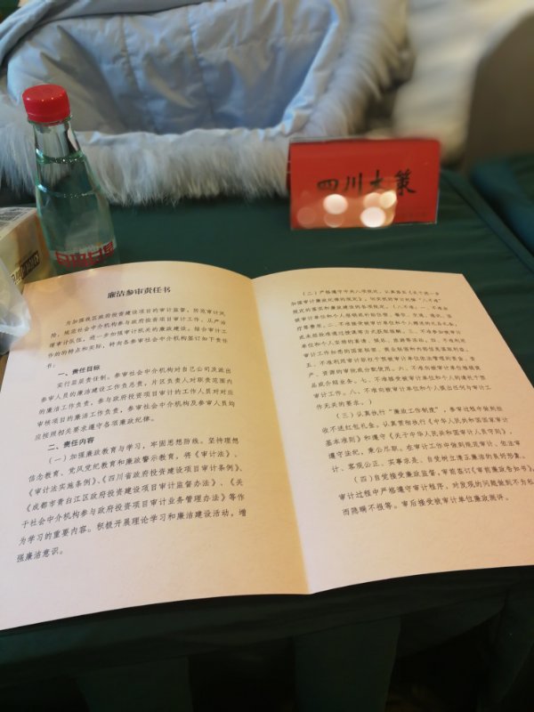 20171227日成都市青白江審計(jì)局舉辦了2018-2020年社會中介機(jī)構(gòu)審計(jì)業(yè)務(wù)培訓(xùn)會。此次會議對政府投資項(xiàng)目的評審、前期方案、招投標(biāo)程序、完成后的決算審計(jì)等內(nèi)容做了專題培訓(xùn),并重點(diǎn)強(qiáng)調(diào)了社會中介機(jī)構(gòu)廉潔參審。我公司受邀參與此次會議,積極配合工作,仔細(xì)閱讀了廉政參審責(zé)任書,認(rèn)真開展審計(jì)工作。